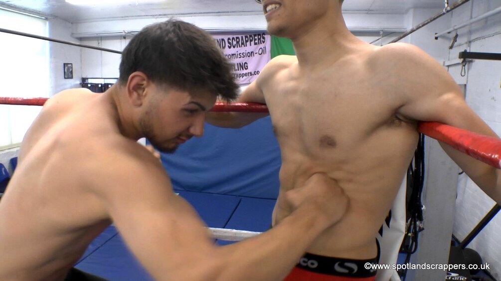 Two Spotland stars in a real abs-testing competition.